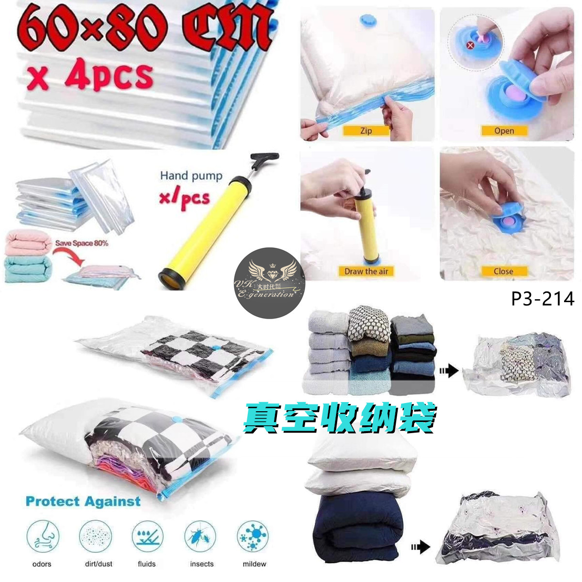可以瞬间把厚厚的床褥立马真空“压扁”,收紧橱柜还不占位子。真空了可以方便排列整齐收纳,让橱柜看起来一点也不凌乱。#1套4个大号1个手动抽气汞