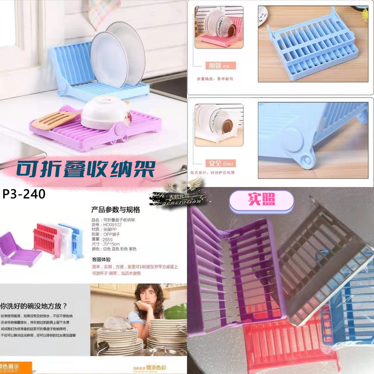 收纳架可以180度平躺.杯子.盘子.碗放在上面沥水方便又实用;它还可以120度的夹角打开,卡扣设计稳固牢靠,12个扁盘子轻松竖起来收纳起来♥