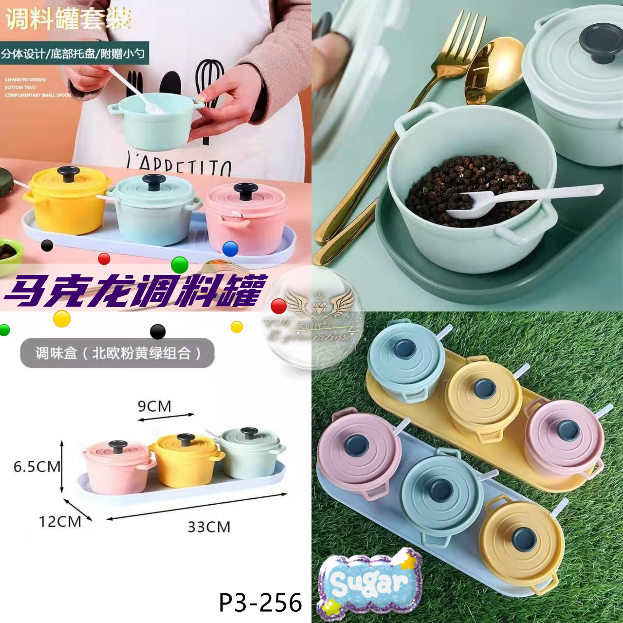 三件套调味料盒,能够放🧂盐糖味精,酱料,都有适合它们用的很取用器,容器都一样,整个厨房整整齐齐~😍😍