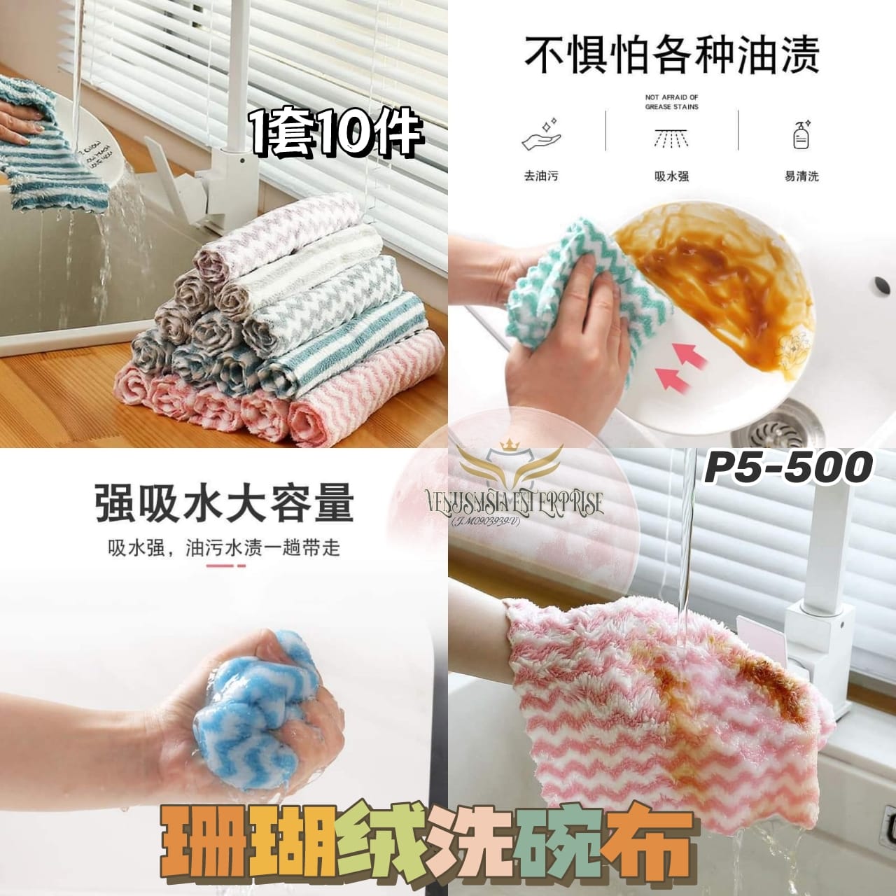 P5-500【珊瑚绒洗碗布 】#1套10件