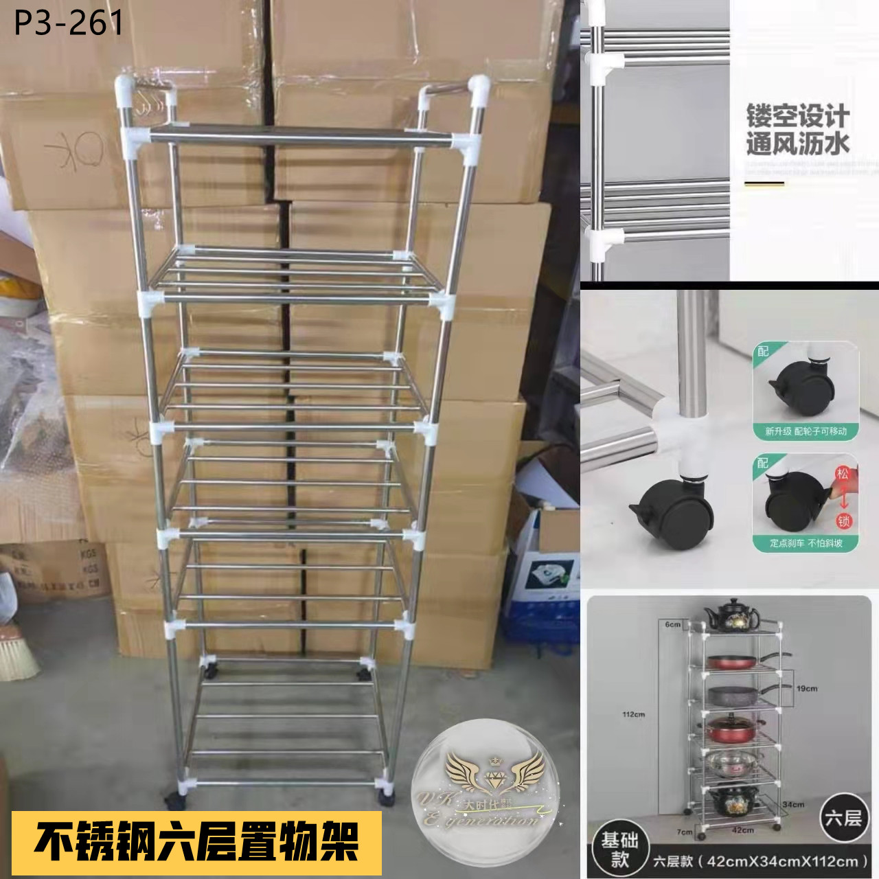 P3-261【不锈钢五层置物架】