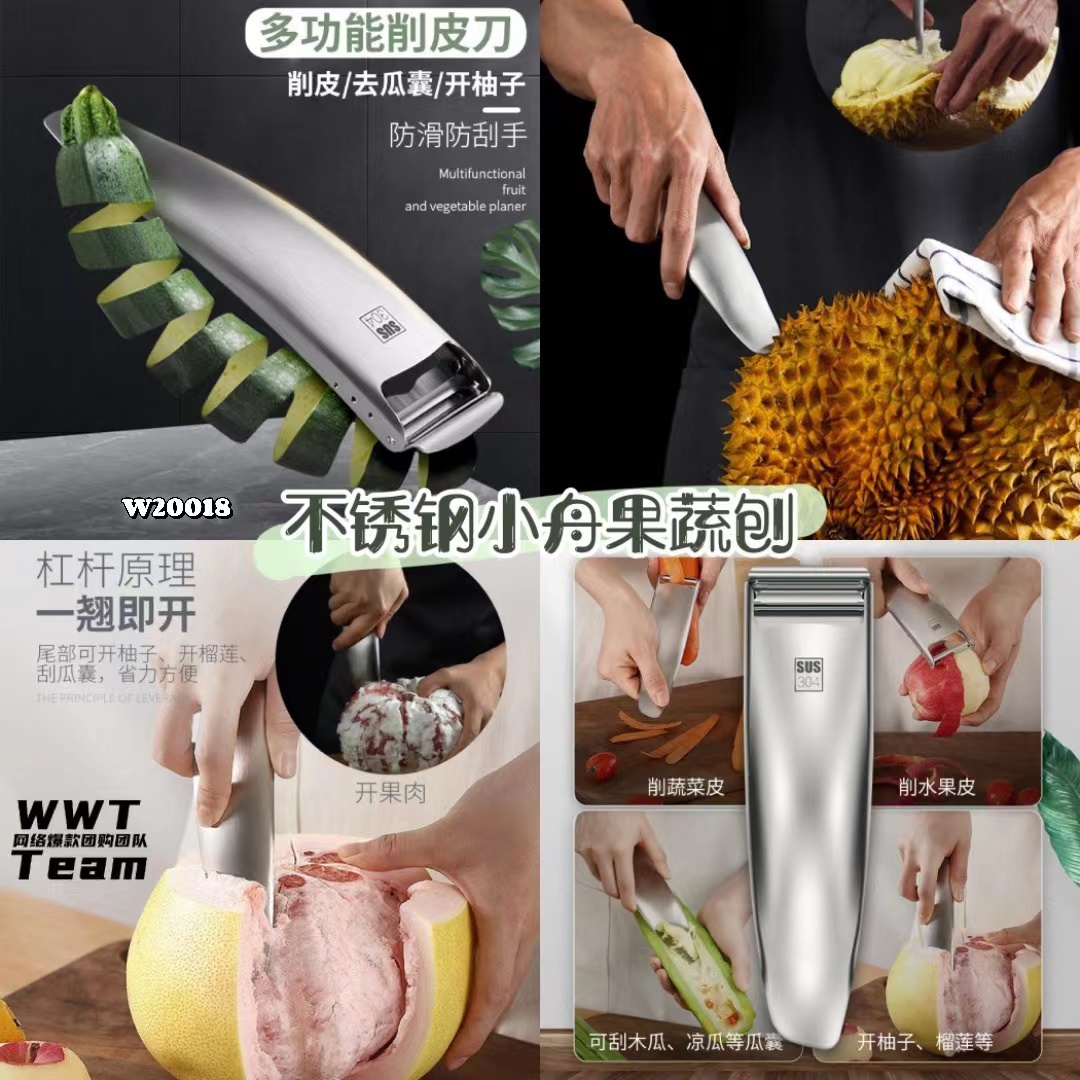 除了🉑削水果皮,蔬菜皮或瓜类的譬如木瓜/凉瓜以为,拿来开柚子或者榴莲都不是问题🤭🤭果蔬刨本身是防滑身的,所以上手是不怕突然滑走的