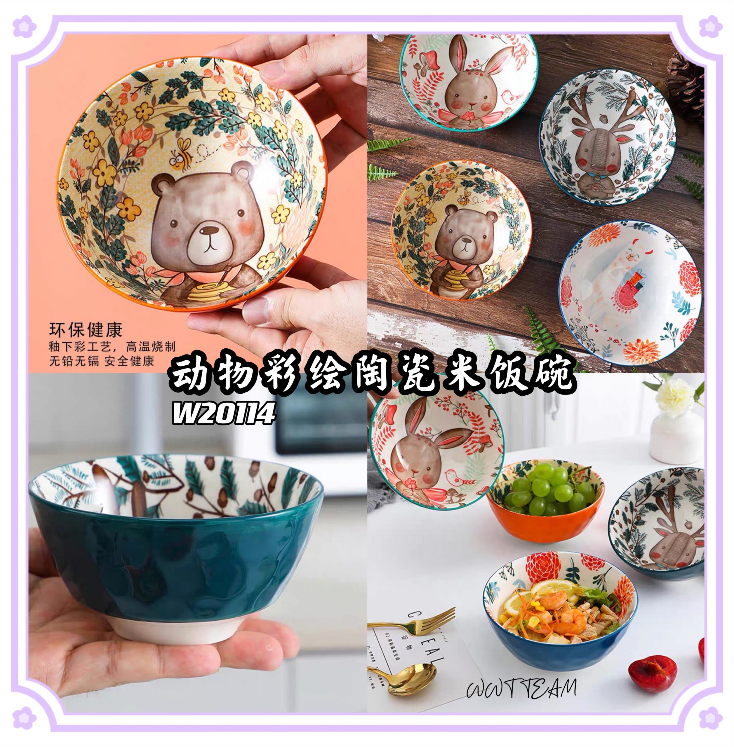 W20114 动物彩绘陶瓷米饭碗【任选2个】