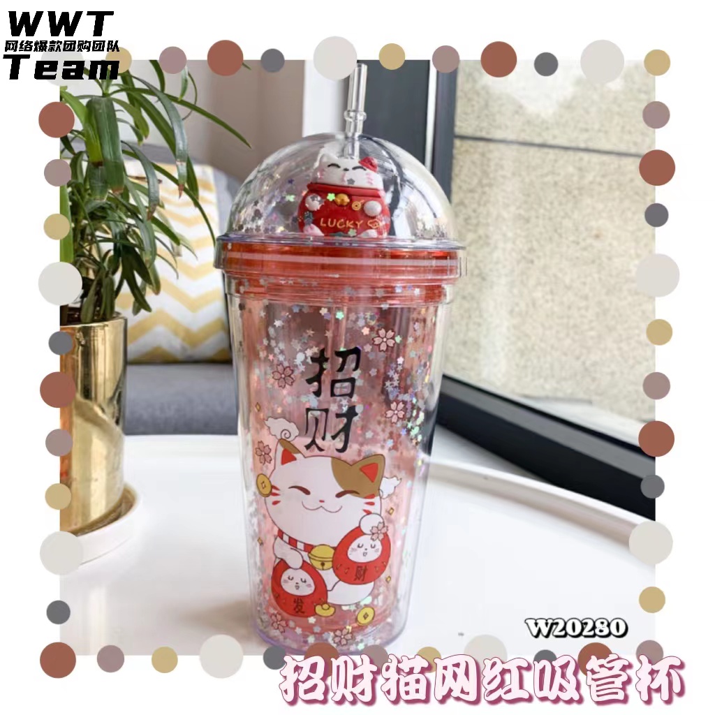 🛒#W20280招财猫网红吸管杯