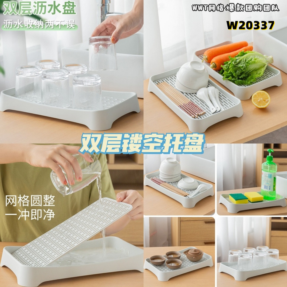 #抖音厨房好物🔥,PP材质托盘,网格镂空,沥水速干,不容易发霉,一盘多用💥,可以收纳可以沥水💦,下层加深加宽👍🏻
