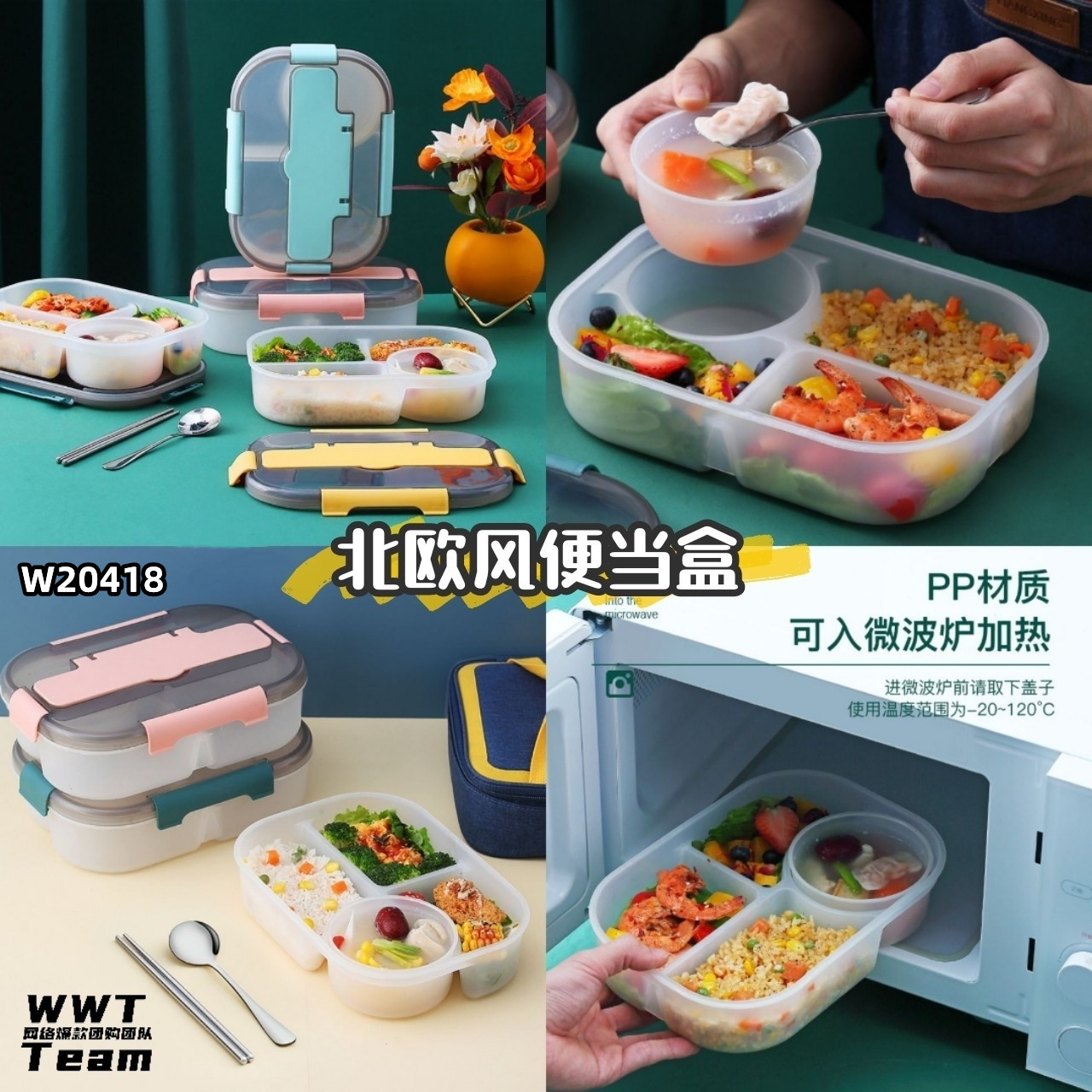 喜欢带便当去上班,那推荐你们这款密封性超好的便当盒!是PP耐高温的食品级材质,可直接放进微波炉加热👍🏻👍🏻👍🏻,设有四个卡扣防漏设计,内有四格分格层和一个带密封盖的汤碗,满足你一餐里三菜一汤的需求
