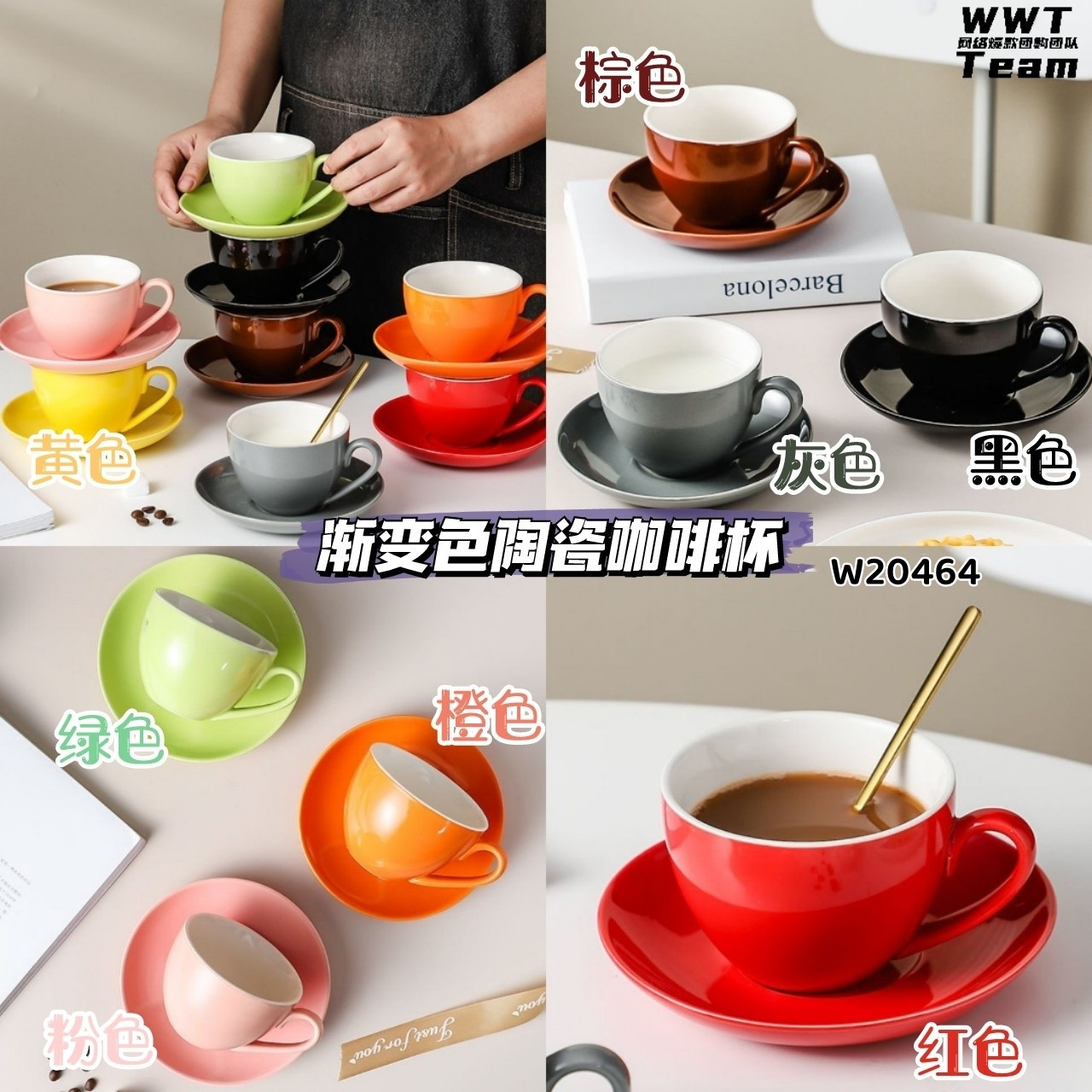 W20464 渐变色陶瓷咖啡杯(1套)