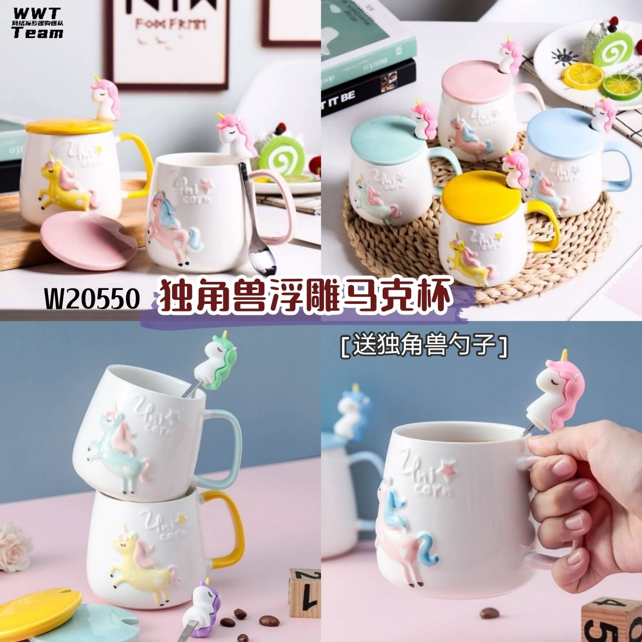🛒#W20550独角兽浮雕马克杯