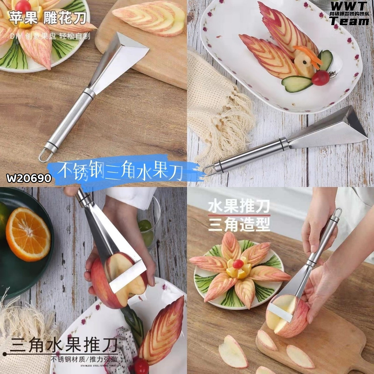 看人家可以切出漂亮的苹果真心觉得很厉害,原来就是用这把三角水果刀‼️,304不锈钢材质就是最好的👍🏻,耐用又硬,一刀下去就是薄薄的三角形
