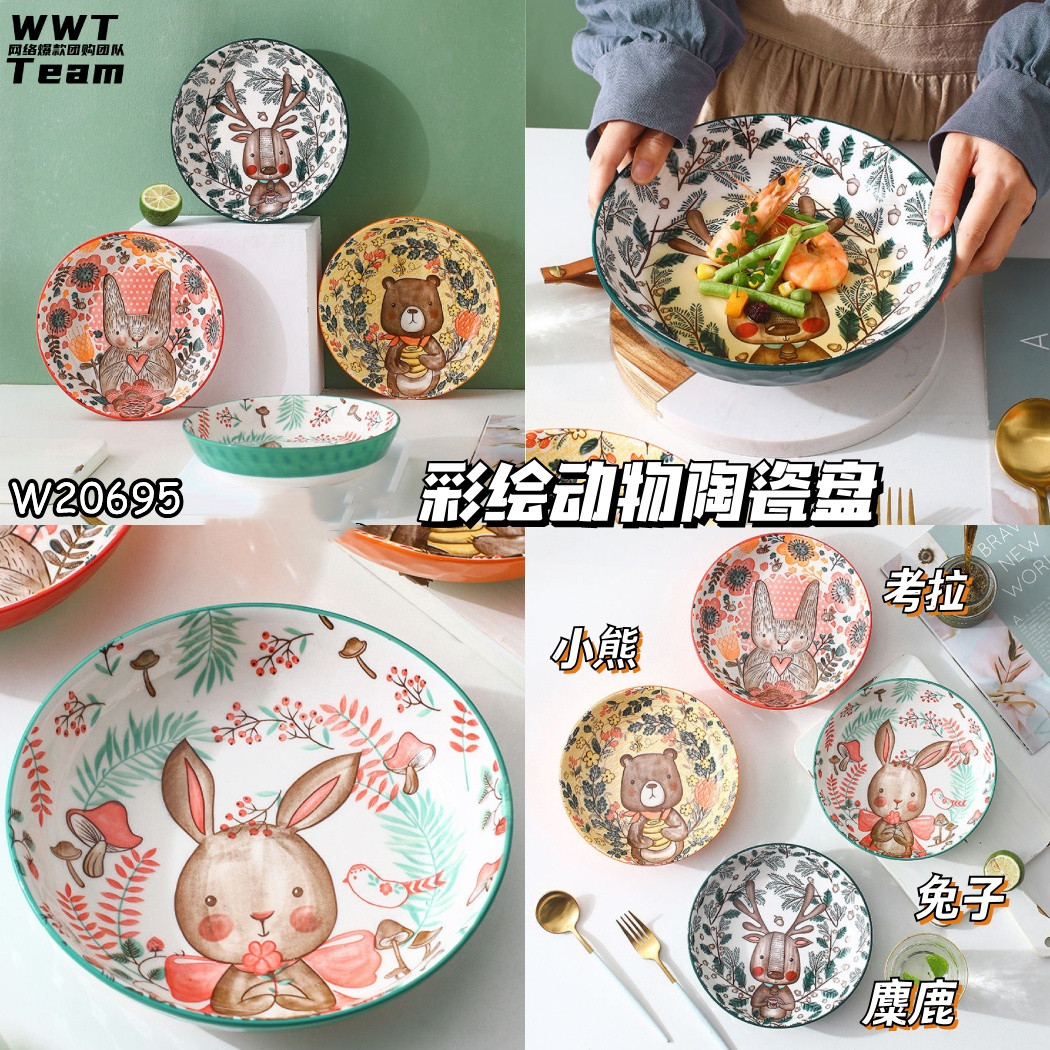 🛒#W20695彩绘动物陶瓷盘