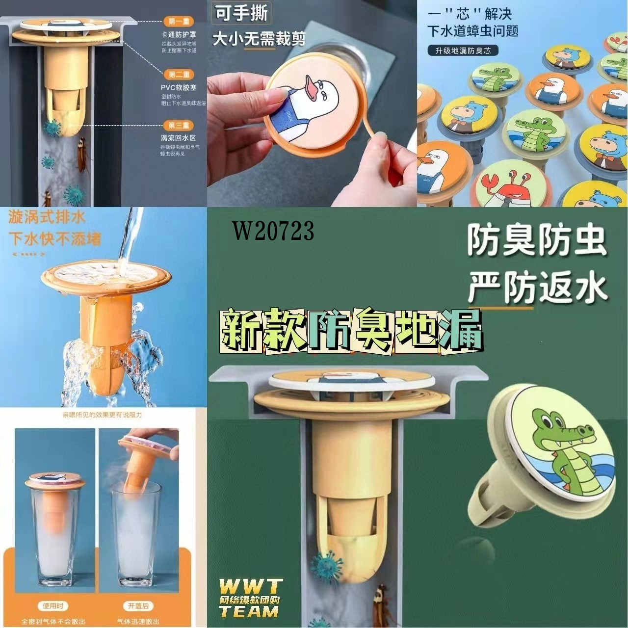 最新升级款🔥🔥比上一代更全面防臭,还设计了可爱的卡通图案😍 新款地漏有「卡通防护罩+软胶防护网+涡流回水区」,三重隔绝预防臭味和害虫回窜,也能预防头发塞住下水道👍🏻,地漏可以手撕调整宽度,适合6.5cm-7.5cm的地漏✅