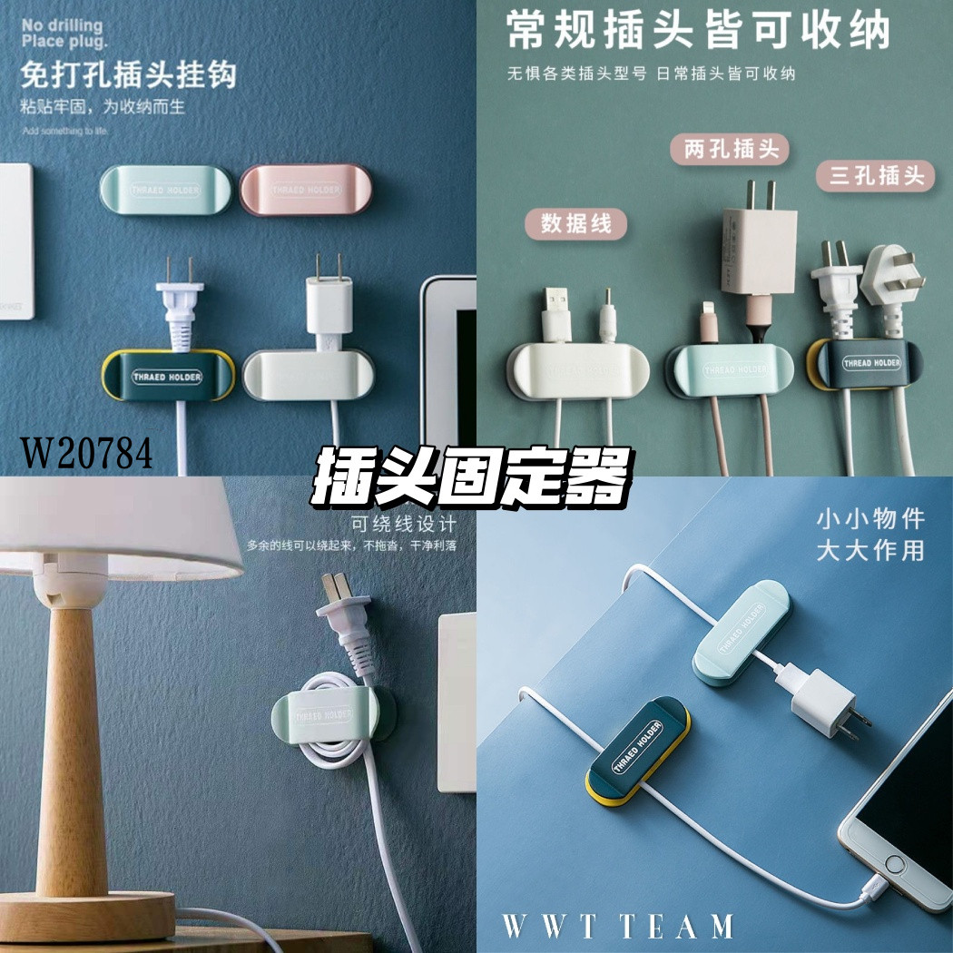 一套4个,很划算哦😍 插头、电线乱七八糟没地方放,用上它,可以把多余的线绕起来,挂上插头秒变整齐👍🏻,免打孔粘贴式,超方便,各种光滑墙面都可用‼️ 颜色随机发哦😊