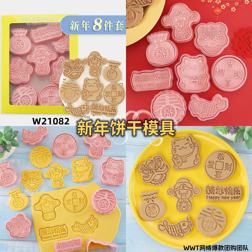 只需要压一压就能得到精致的饼啦‼️,图案是好看的财神爷醒狮等噢😍