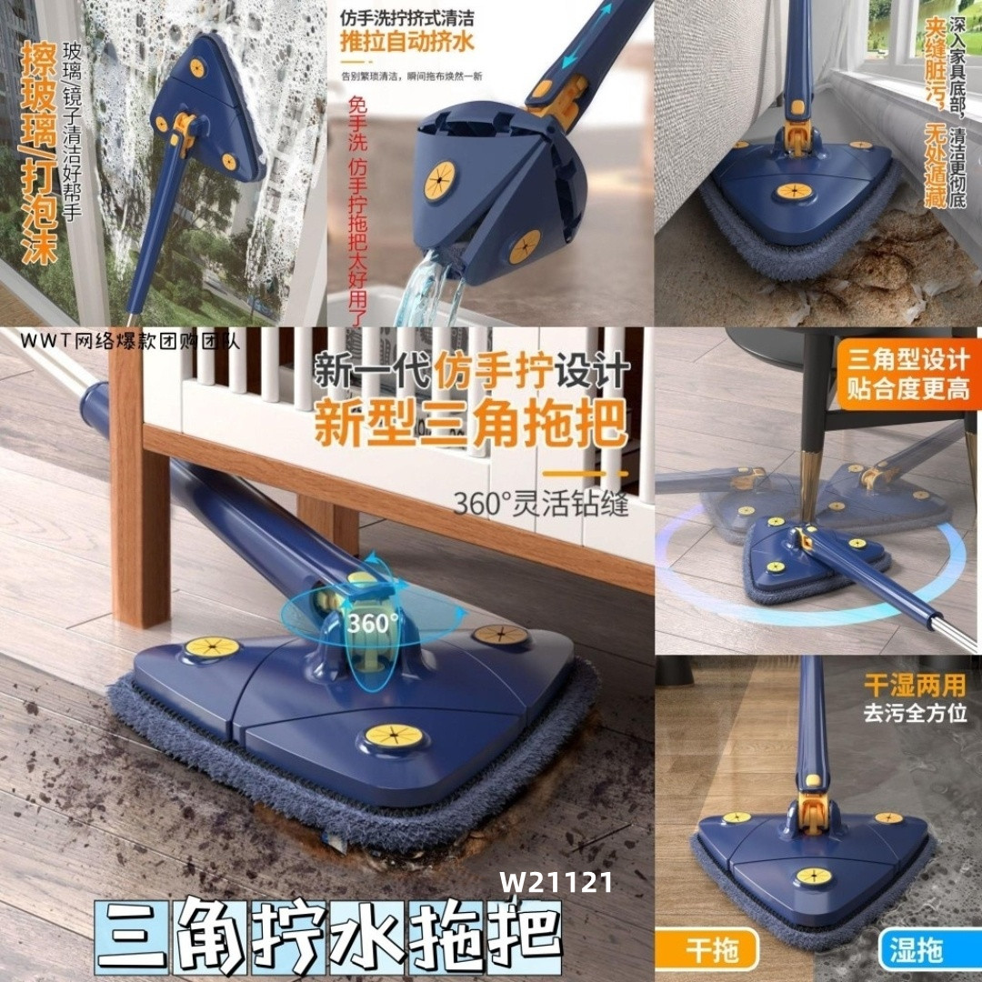 加大的三角面积,抹起来更不费力,抹布是高细纤维布料,吸污吸水力强,干湿两用,抹墙壁、橱柜等高处的地方都可以。360°旋转的轴心,一推就自动拧乾,非常省心