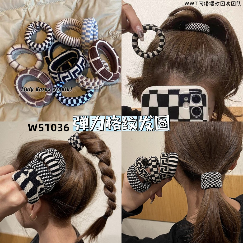 🛒#W51036弹力格纹发圈