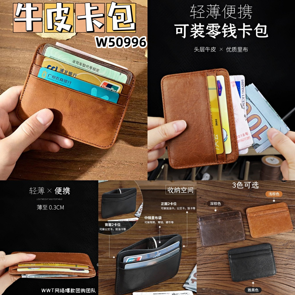 多用途的双面卡包,总共四个卡位和一个中间收纳格,牛皮材质耐磨,而且非常薄,方便携带