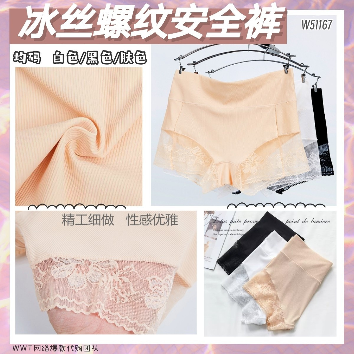 柔软亲肤透气螺纹面料,棉质抵挡面料,吸湿透气排异味🤗,无痕高弹中腰设计✅,镂空的蕾丝裤边,非常性感还担心不卷边😉