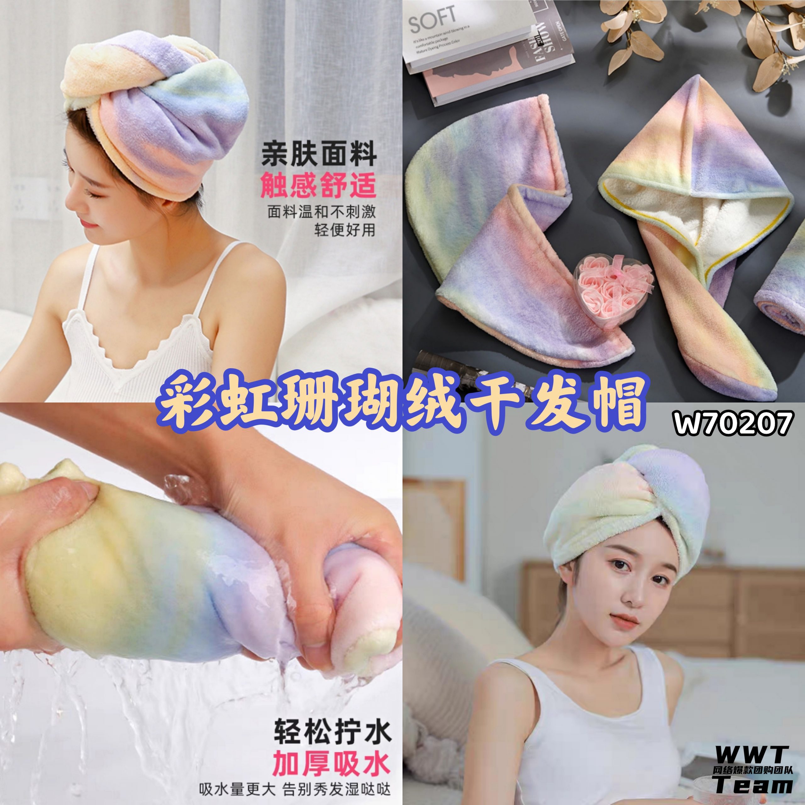 🛒#W70207彩虹珊瑚绒干发帽