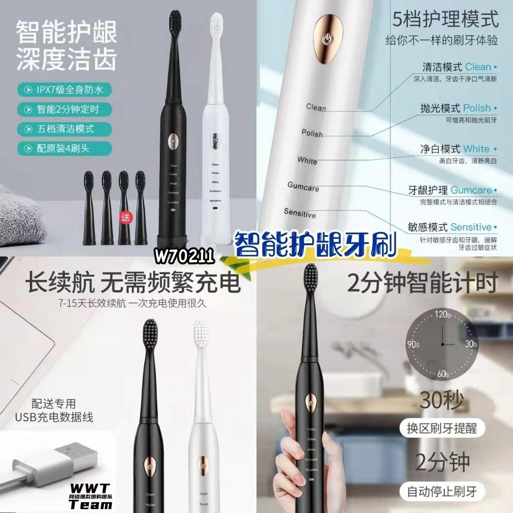 有5档清洁功能,针对不同口腔问题,全身防水,太值得👍🏻,充电款
