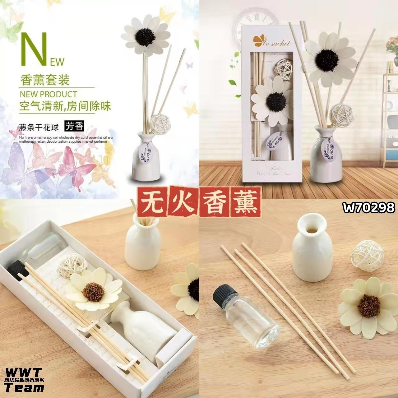 这种无烟香薰适合所有家庭✅,没有明火很安全,利用木支吸水扩散的原理达到扩香效果,除了木支之外,附送的藤球和干花球都有扩香功能喔❗