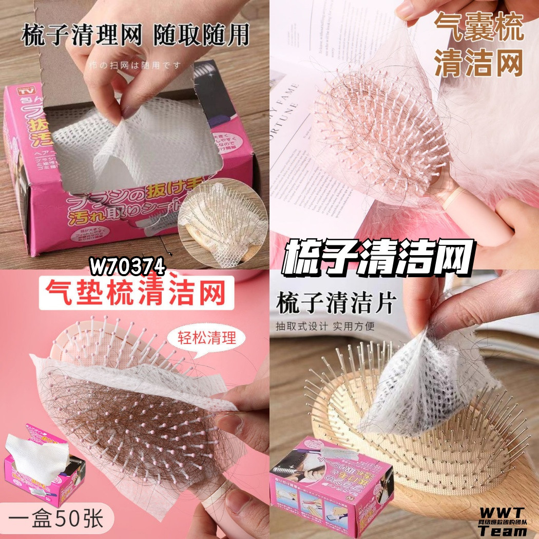 梳子缠绕了一大堆头发,特别难清理,有了这个,直接将清洁片丢掉就行,任何类型的梳子都适合,一片不是用一次就丢啊,用到你想换新的为止😂,一盒真的用很久👍🏻
