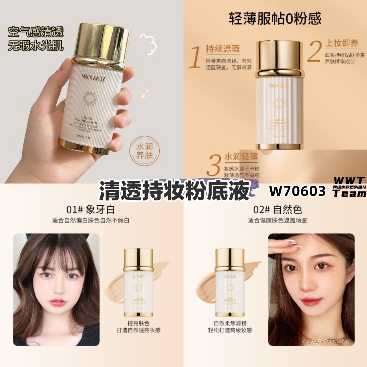🛒W70603清透持妆粉底液