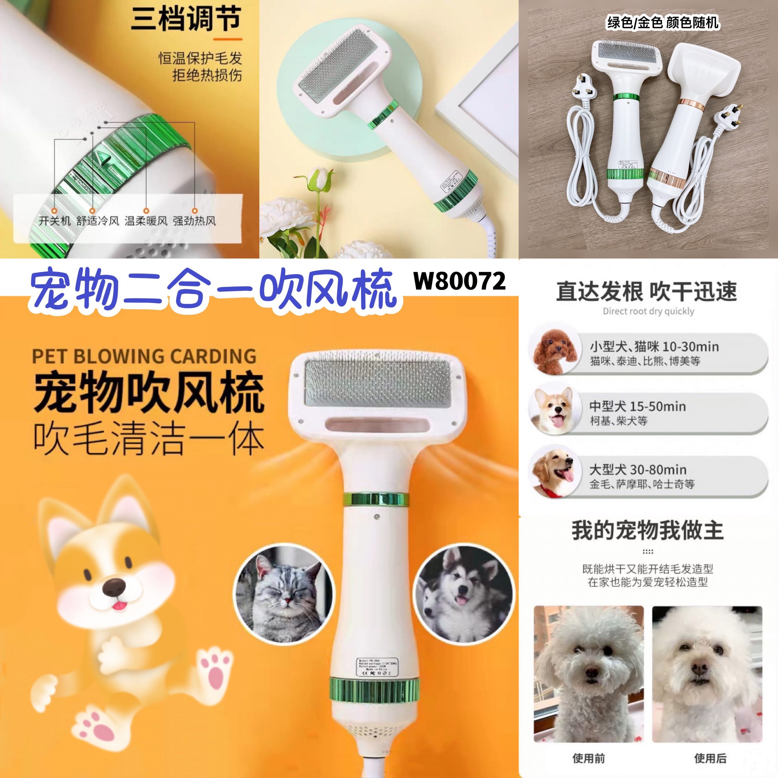 🛒#W80072二合一宠物吹风梳